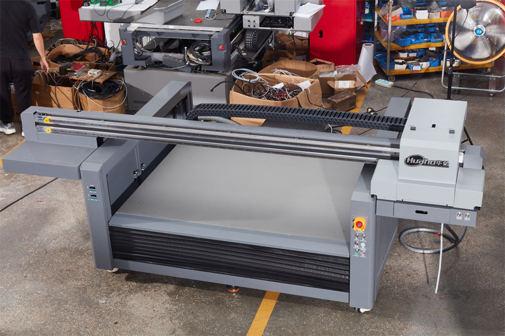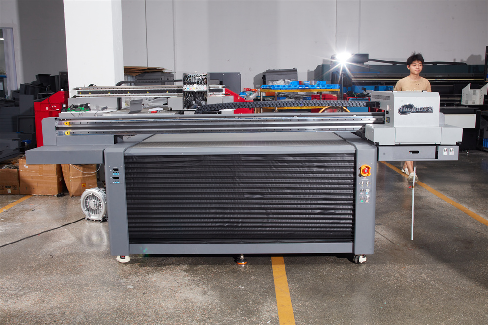 華弘1610uv平板打印機(jī),打印幅面1.6m*1m,配備智能分區(qū)吸風(fēng)平臺(tái),打印平臺(tái)可升降500mm,可選配視覺定位系統(tǒng),機(jī)架全鋼結(jié)構(gòu)退火處理龍門精銑,led固化系統(tǒng)即打即干。